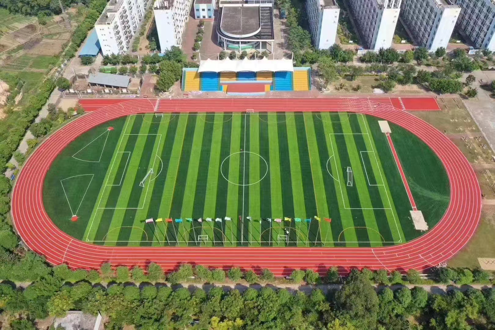 塑膠跑道又稱全天候田徑運(yùn)動跑道,由聚氨酯預(yù)聚體、混合聚醚、廢輪胎橡膠、EPDM橡膠粒或PU顆粒、顏...